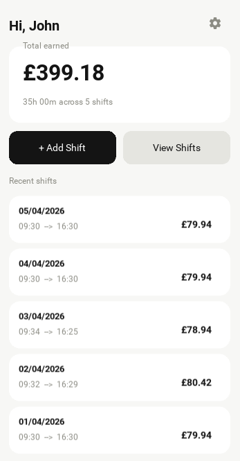 Whether you’re doing regular part-time work or picking up informal and casual shifts here and there, Shiftly helps you keep everything in one place so you always know what you’ve earned and when you’ve worked.